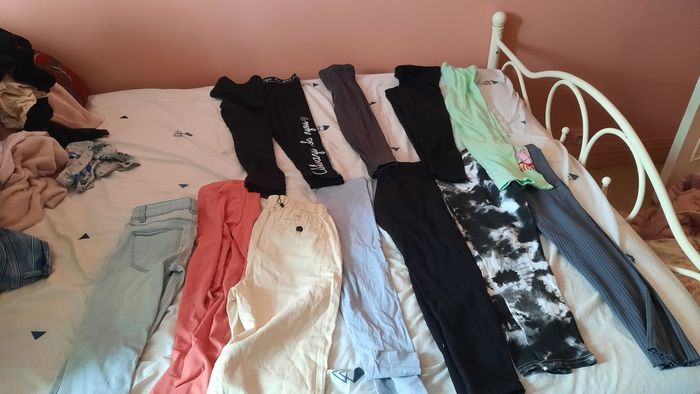 Je vends ce lot de leging et et pantalon quasiment neuf porter taille 1 fois ou 2 pour fille taille 7 a 9 ans achter a primark kiaby et zara