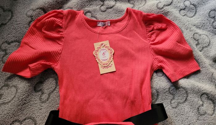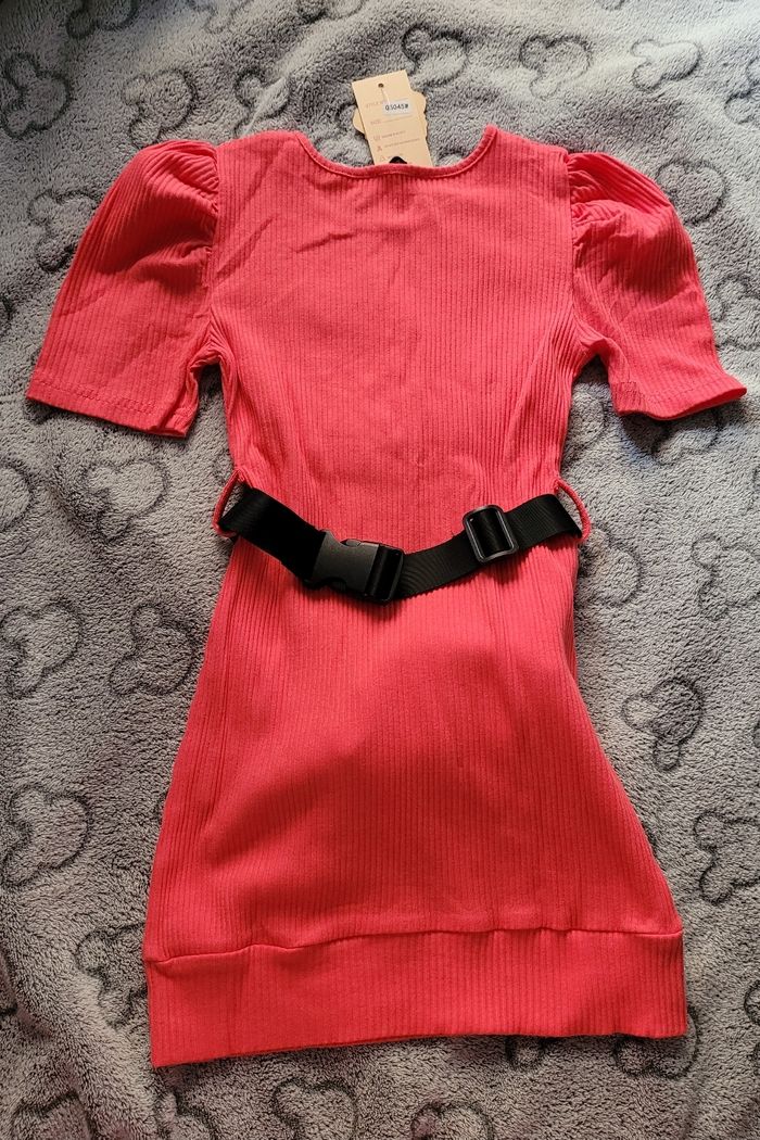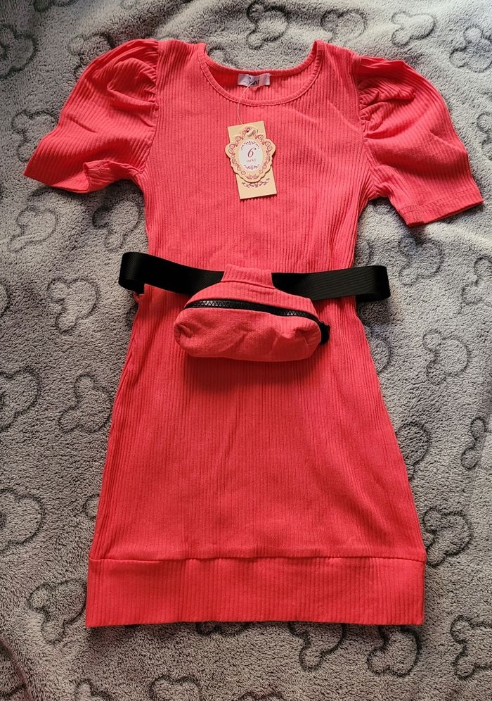 Jolie robe côtelée avec manches bouffantes et banane #fille6anstattoogirl_3
