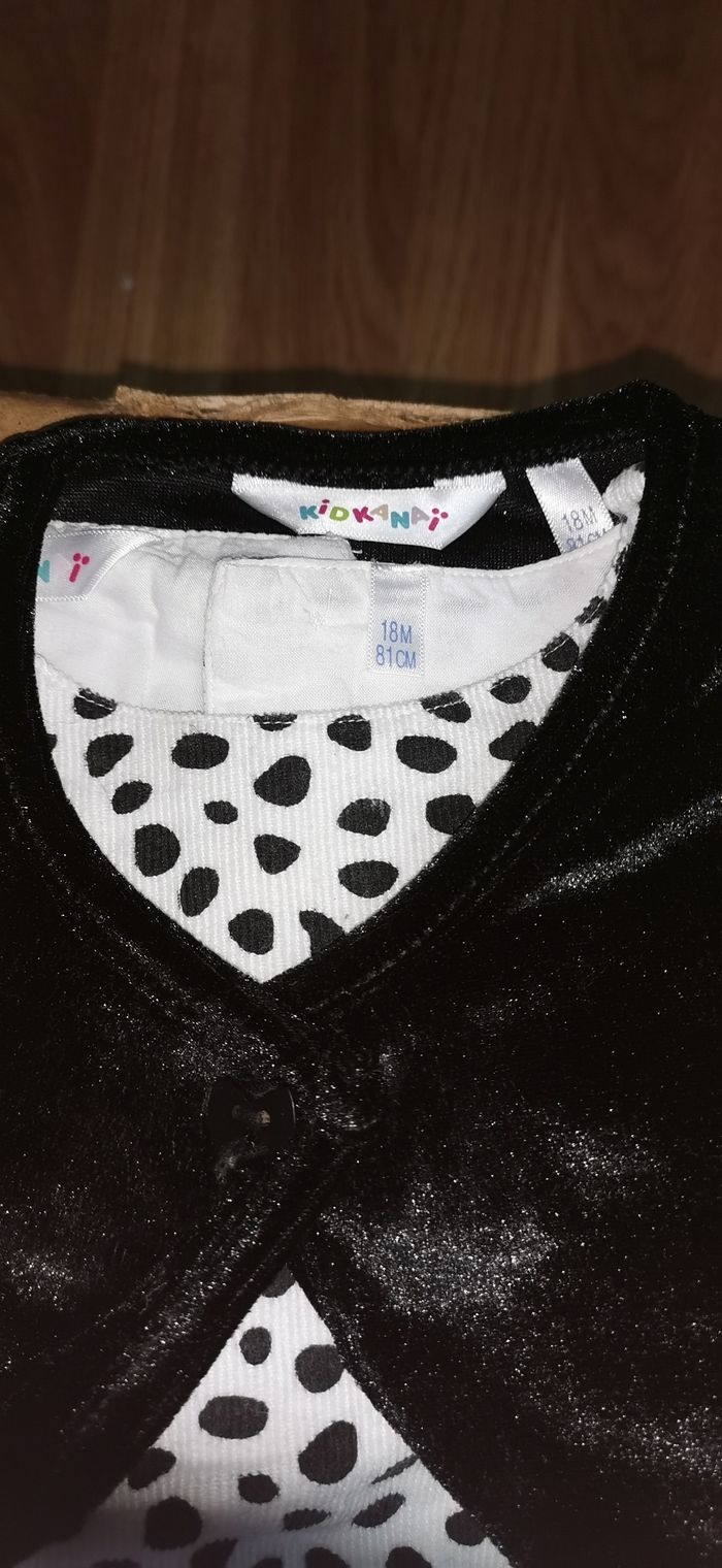 Robe blanche à taches noires avec son petit gilet noir en velours fin