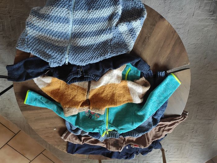 Lot de vêtements en bon état, servi pour un enfant 9 pantalons 2 manteaux ( tissaïa ), bonnet écharpe 7 gilets/sweats 4 tee shirts manches longues/chemise/polo Diverses marques, essentiellement obaïbi