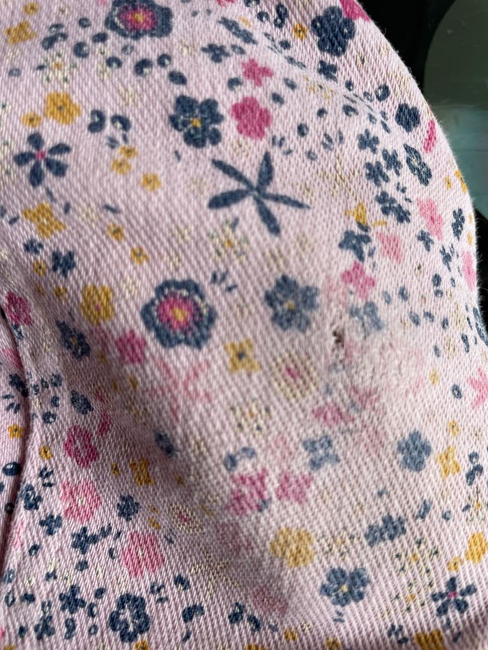 Aux genoux: blanchi Début d’usure à l’un des genoux: cf photo Pas de tâches Un peu frotté au niveau des poches arrières