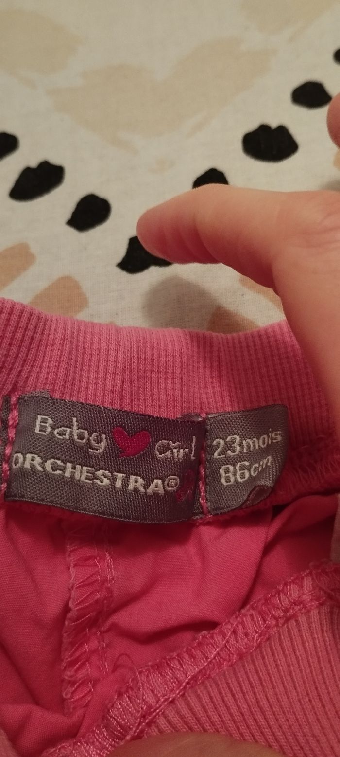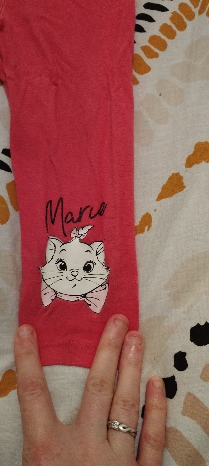 Lot de deux pantalons en taille deux ans un legging marie des Aristochats de marque Disney et un pantalon rose de la marque Orchestra