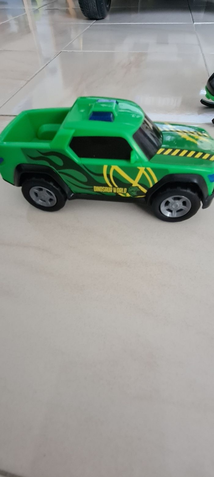 Hélicoptère, 2 voitures dinausaures. État neuf