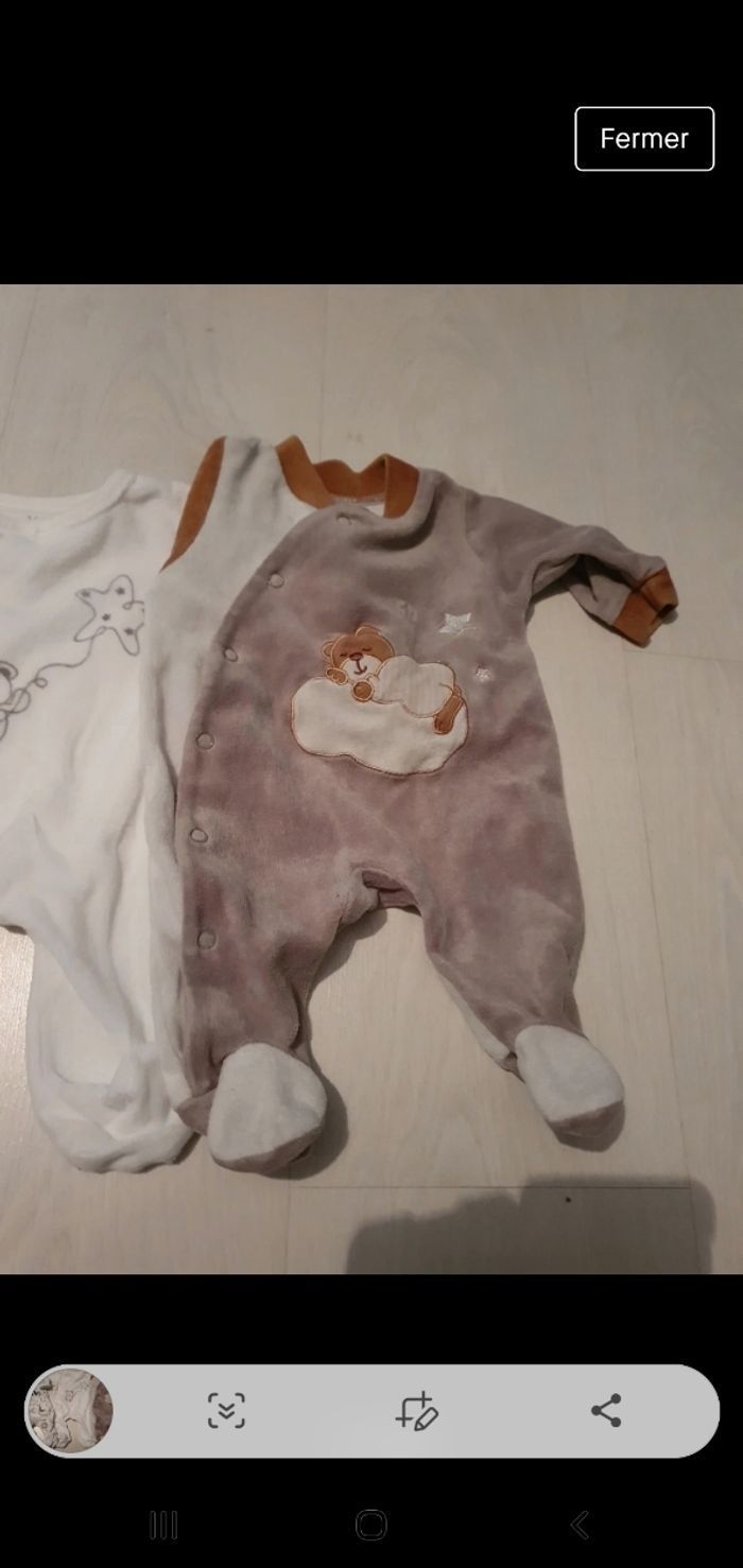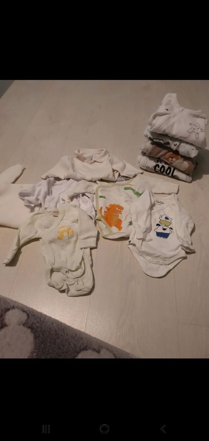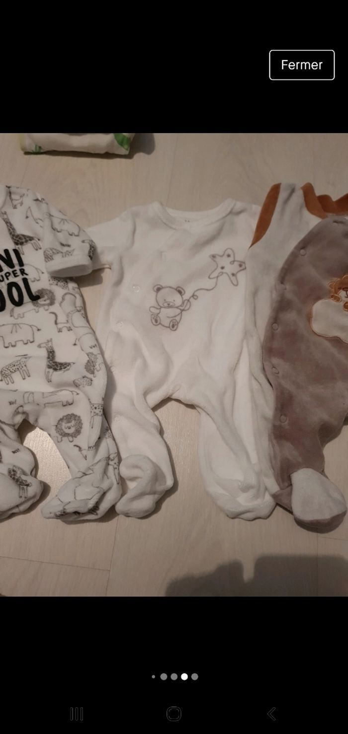 1 gilet blanc en laine 5 bodys manche longues 4 pyjamas en velours Différentes marques