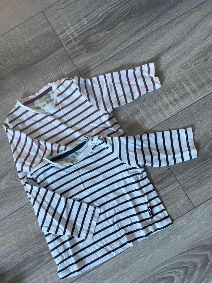 Le gris viens de chez Zara 9/12 mois 5€ Le pull à rayure blanc / beige 9 mois kiabi 5€ Batman 12 mois 5€ Éden Park 12 mois 8€ Le vert kaki 9 mois 3€ Le pull à rayure 9 mois 3€ Les deux pull marin 3€ 30€ le tout