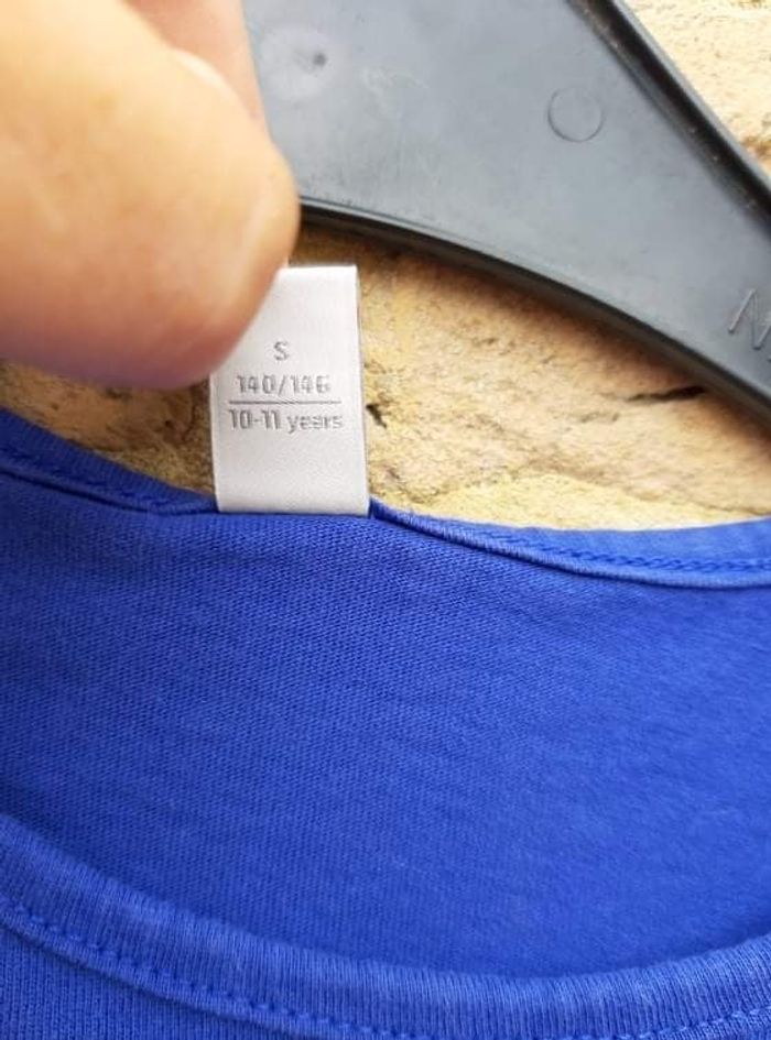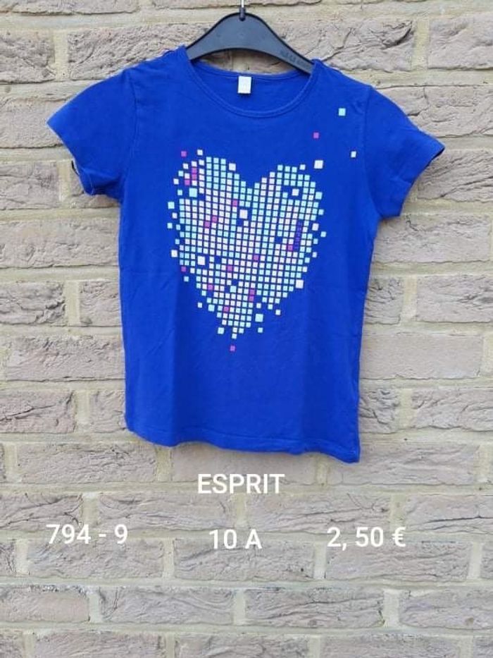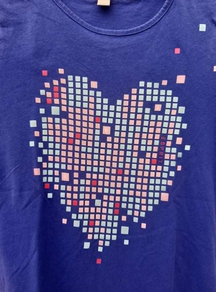 T shirt bleu avec 1 cœur avec des petits carrés ( rose clair, rose foncé et bleu clair )