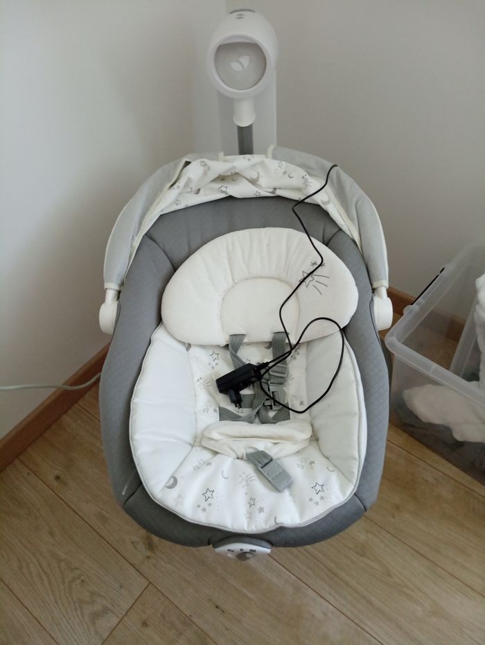 Balancelle joie très peu servi ! Fonctionne très bien ! Se balance dans plusieurs sens . L assisse peut se décrocher de la nacelle et sen servir de cosy musique bruit blanc et vibration