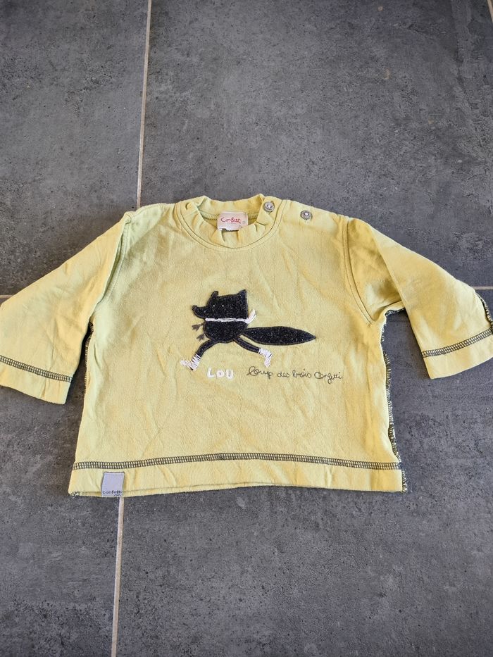 T-shirt manche longue de couleur vert pâle avec "Lou loup des bois" en 12 mois