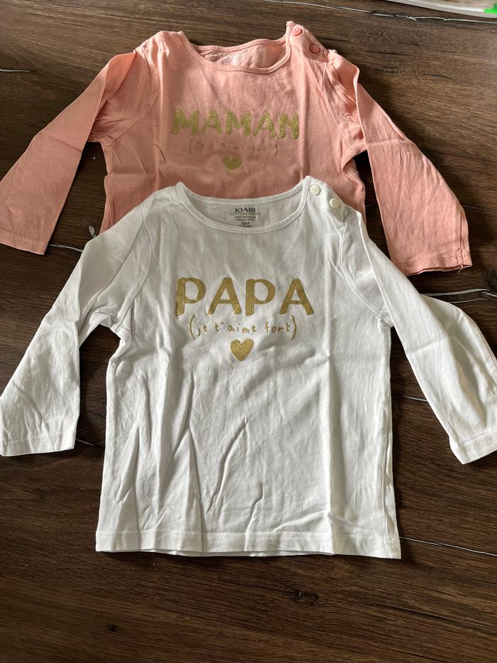 Lot de 2 pulls fins (T-shirts manches longues), idéal pour la mi-saison, en excellent état Marque Kiabi Taille 18 mois - 77/82cm