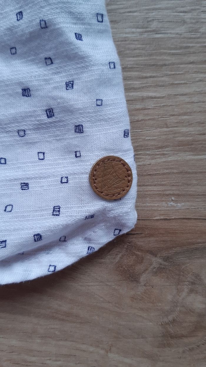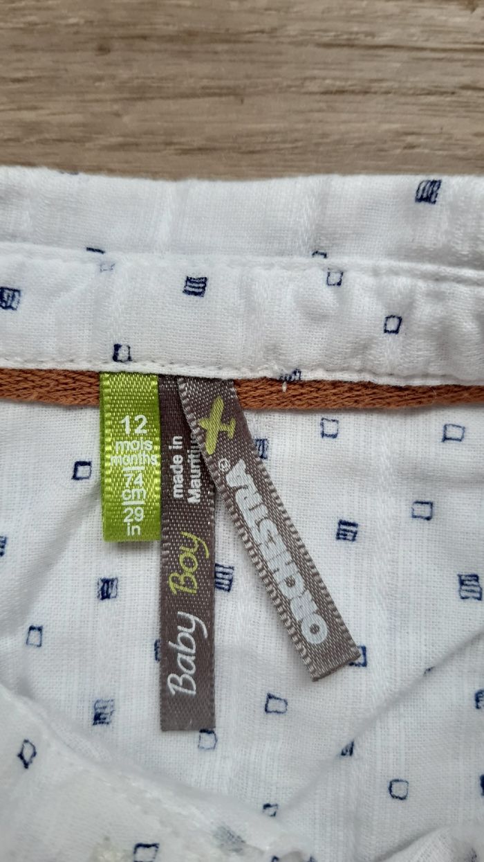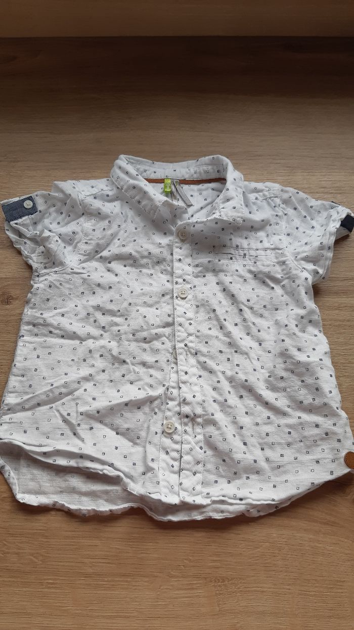 Chemise manches courtes blanche avec petits motifs bleu. Parfait état. Orchestra.