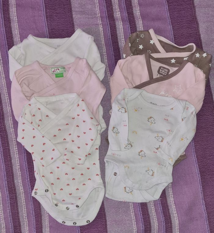 6 bodies Coton manches longues Taille 1 mois Pressions devant (sauf 1) #dadybaby #bodies1mois #bodiesbebe