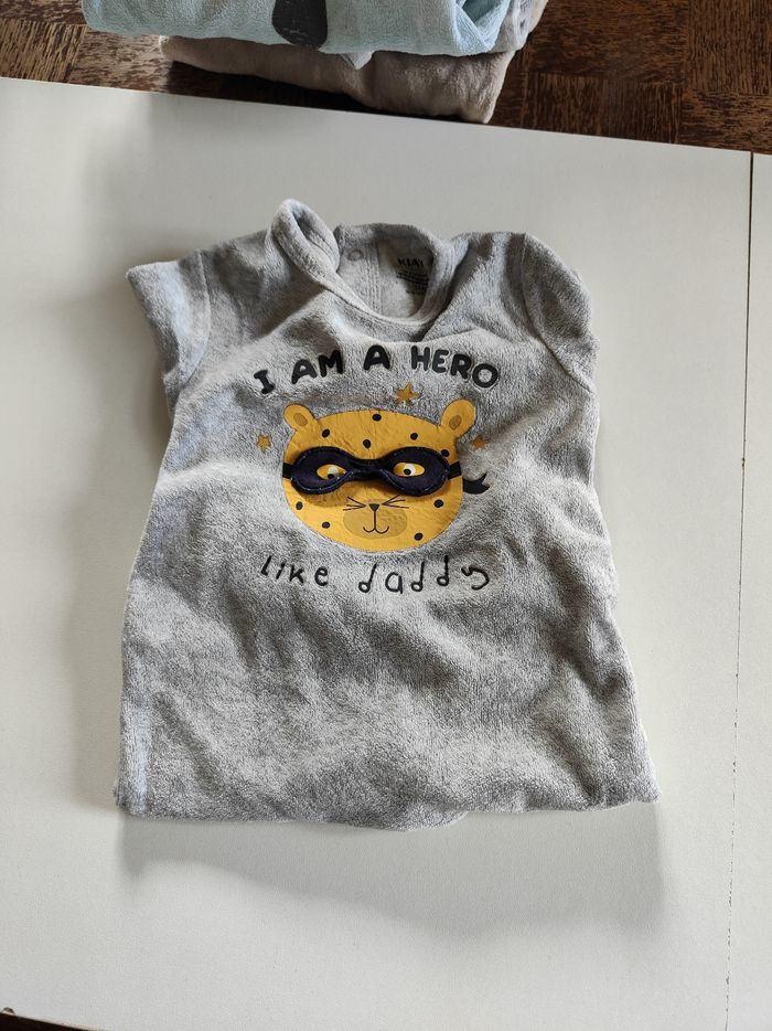 Lot de 4 pygamas en très bon état Marques : Kiabi, Grain de blé, Kitchoun Le pygama bleu a été un peu plus porté. Un pygama supplémentaire est donné avec car il y a un petit trou (qui n'empêche pas d'être porté) D'autres vêtements bébé fille et garçon disponibles dans mon dressing, n'hésitez pas à jeter un œil