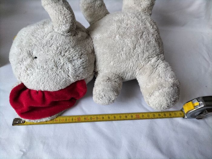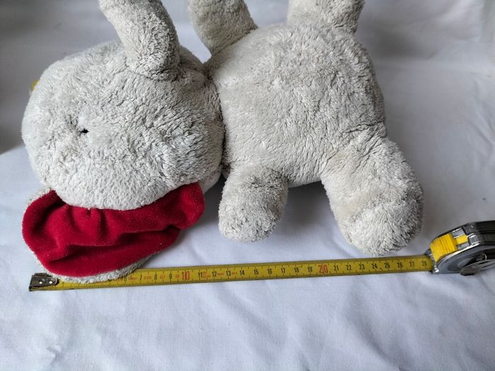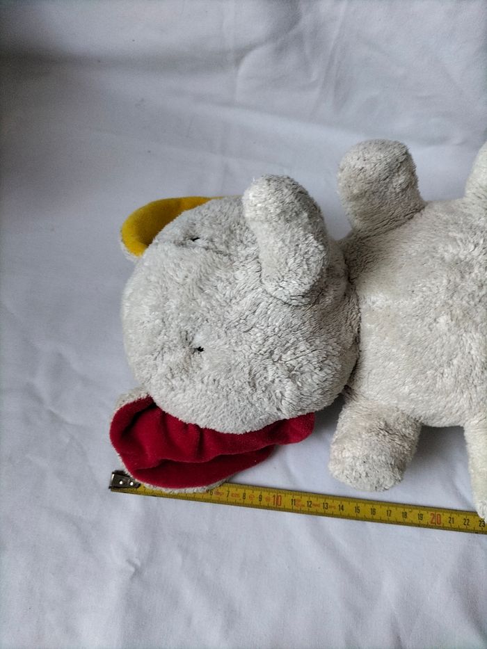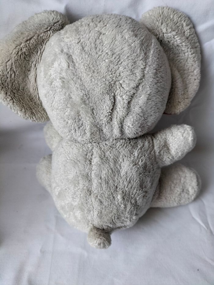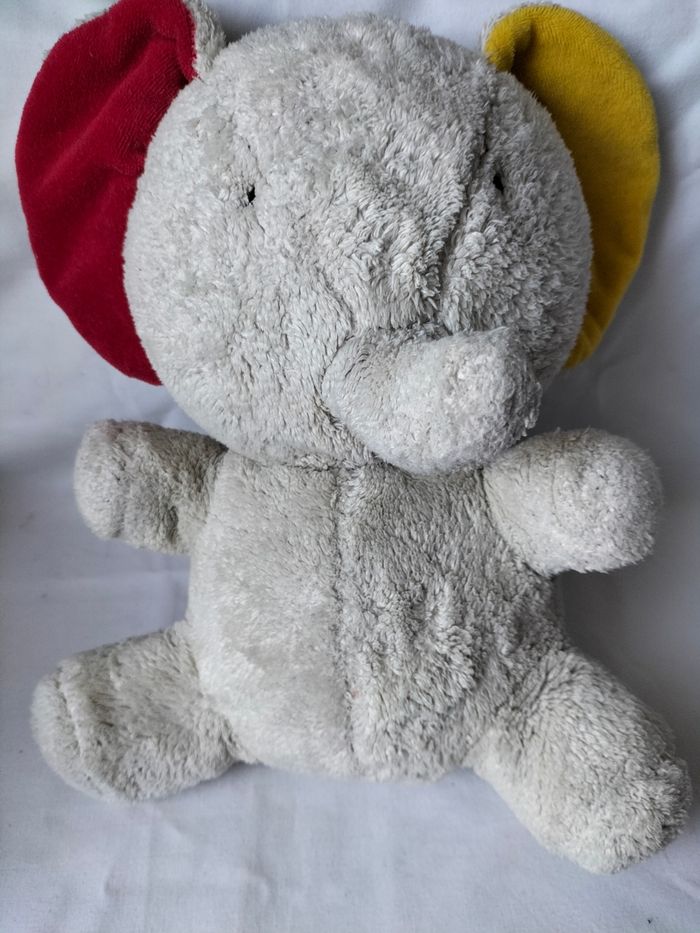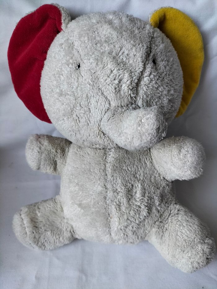 Doudou éléphant Une oreille jaune Une Praille rouge