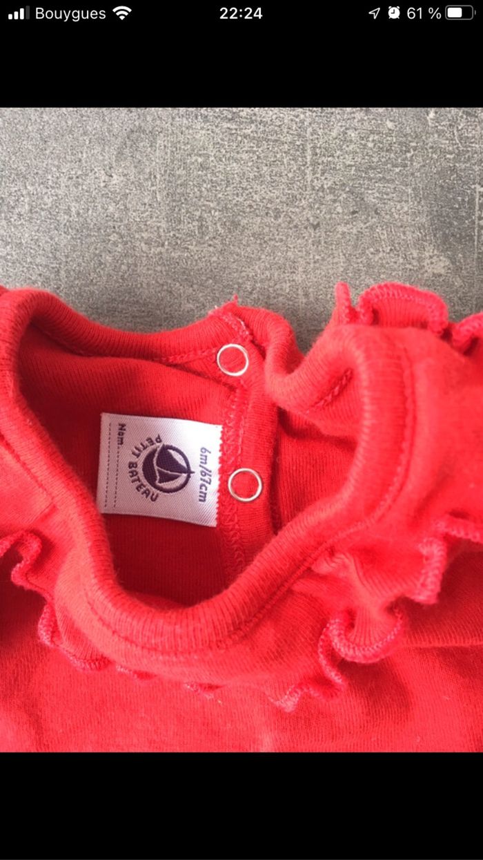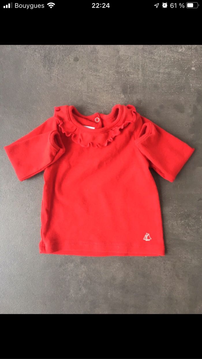Teeshirt manches longues neuf Petit Bateau, de couleur rouge avec son petit col en 6 mois. 5€