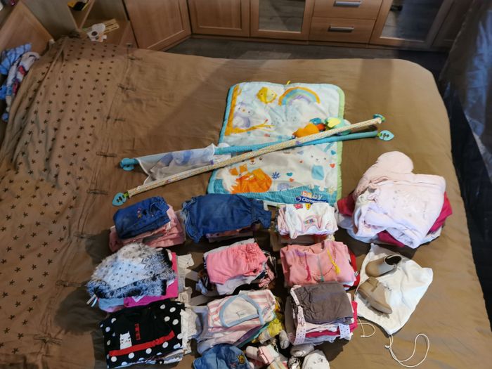 Lots 6-9 mois plus de 70 pieces Plus chaussure et pantoufle pointure 20 Plus lots de chaussure 6-9 mois plus tapis d'éveil combinaison hiver