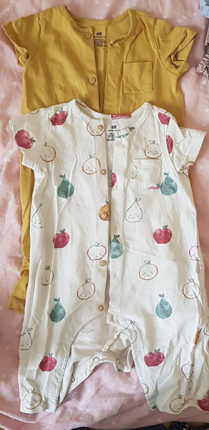 Lot de 2 combi short en coton bio -2-4 mois - Possibilité de faire un lot avec plusieurs vêtements du dressing
