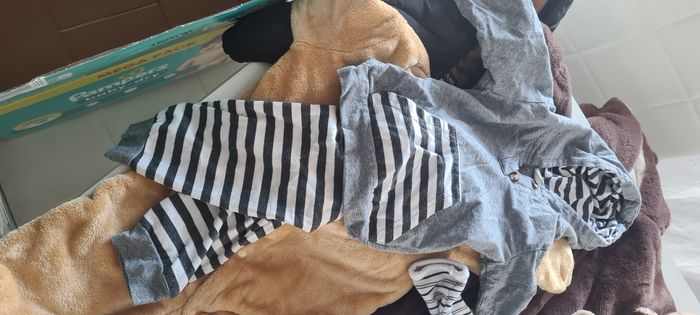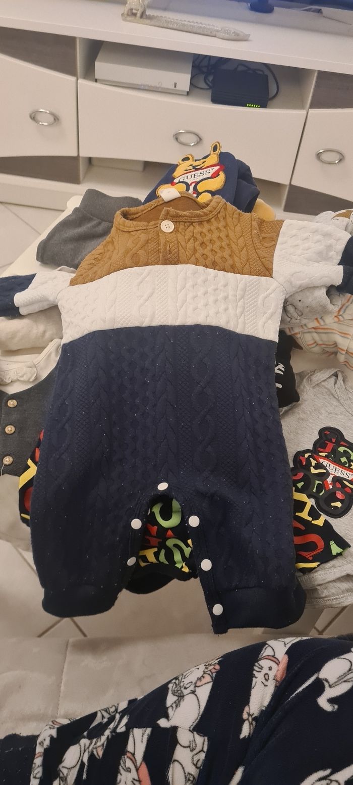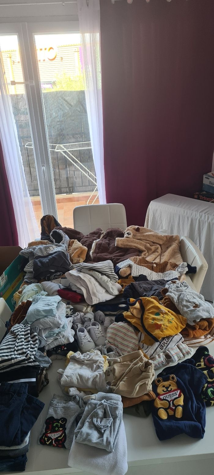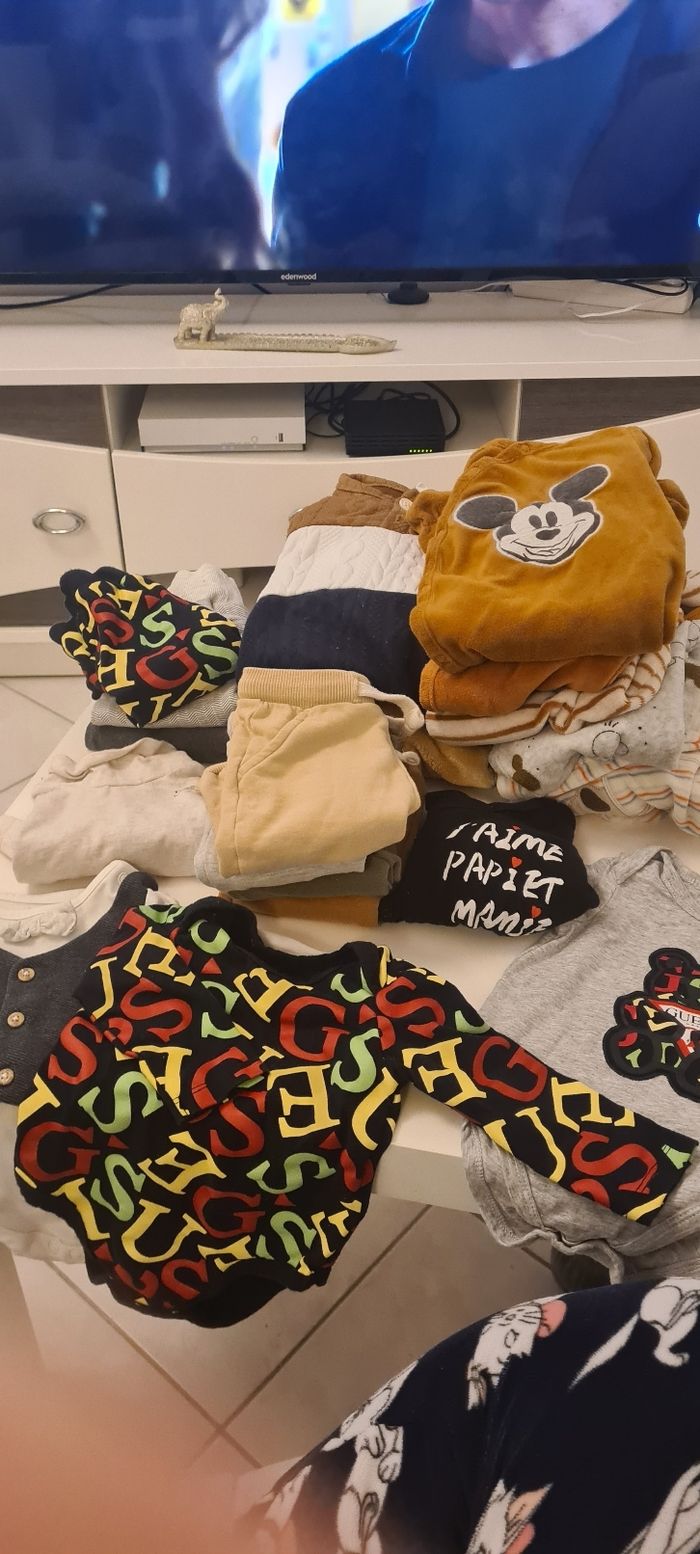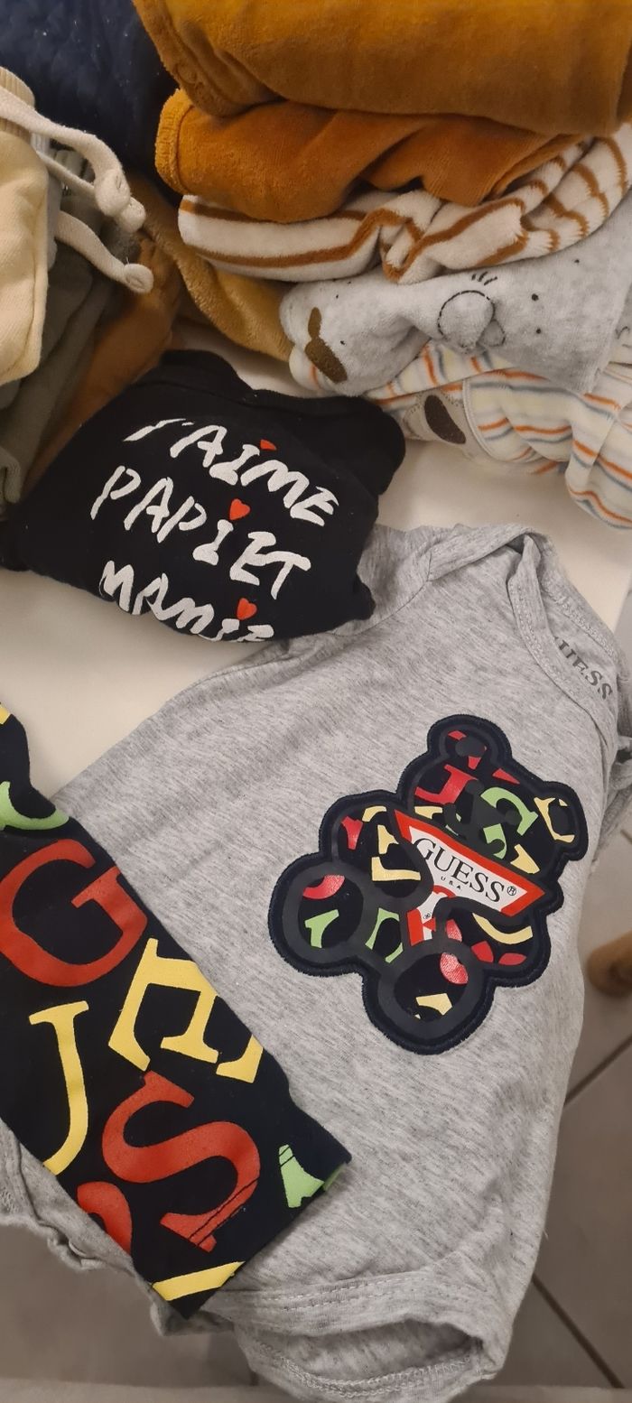 68 Vetements garcons 3/6 mois et 9 mois 7 pyjamas velours 2 pyjamas 9 mois léger 11 body 2 paires de chaussures 1 paire de chaussons 7 paires de chaussettes 7 pantalons 5 enssemble bas + haut 7 pulls 4 joggings 2 enssembles guess + 1 body 1 col roulé 3 bonnet 1 gilet 3 combinaison extérieure 1 manteau 1 combinaison 2 surchemise