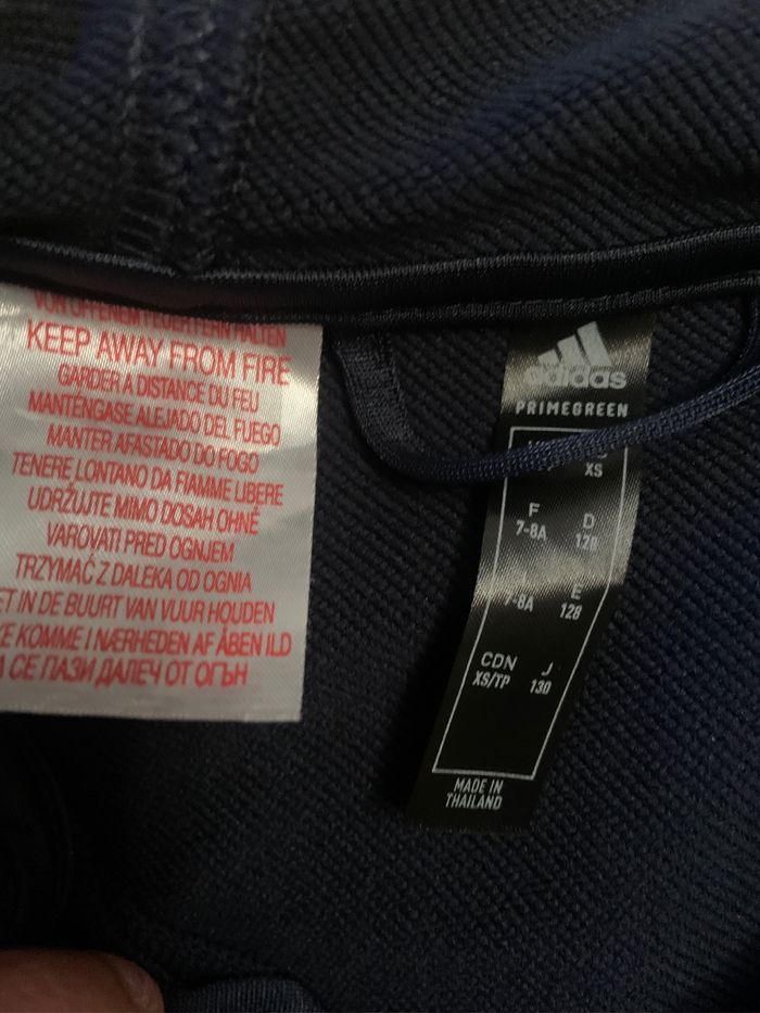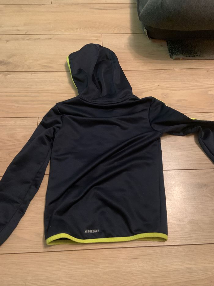 Veste adidas marine et fluo. Excellent état. Fermeture à zip. Taille 7/8 ans