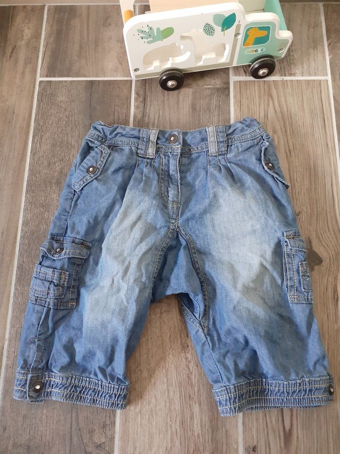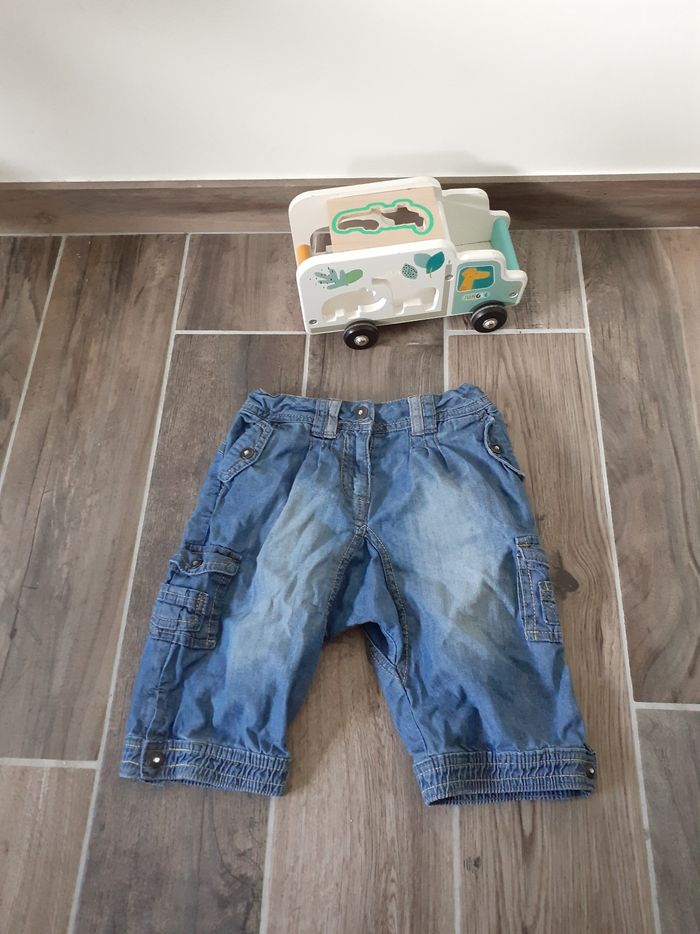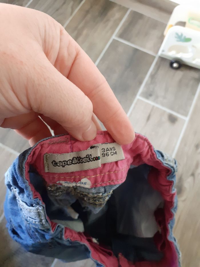Pantacourt en jeans taille 3 ans beaucoup porté, avec élastique de réglage à la taille.