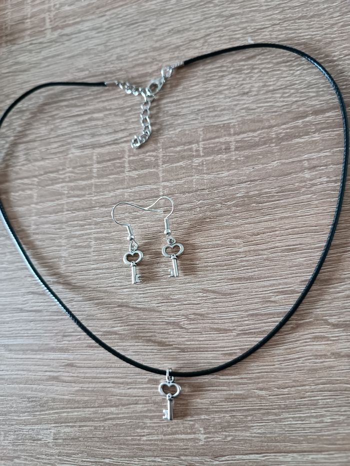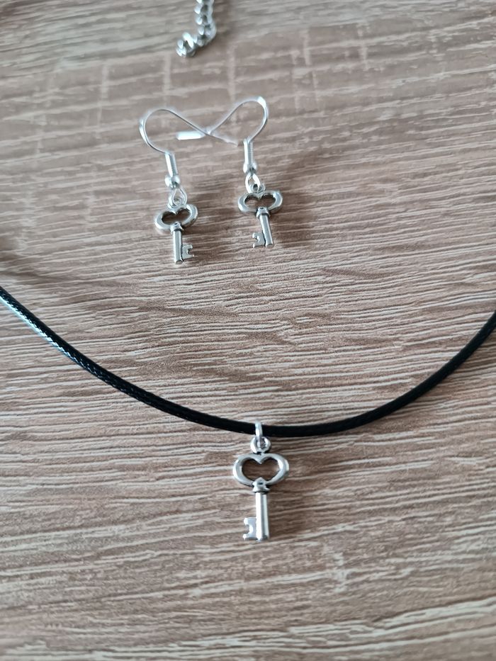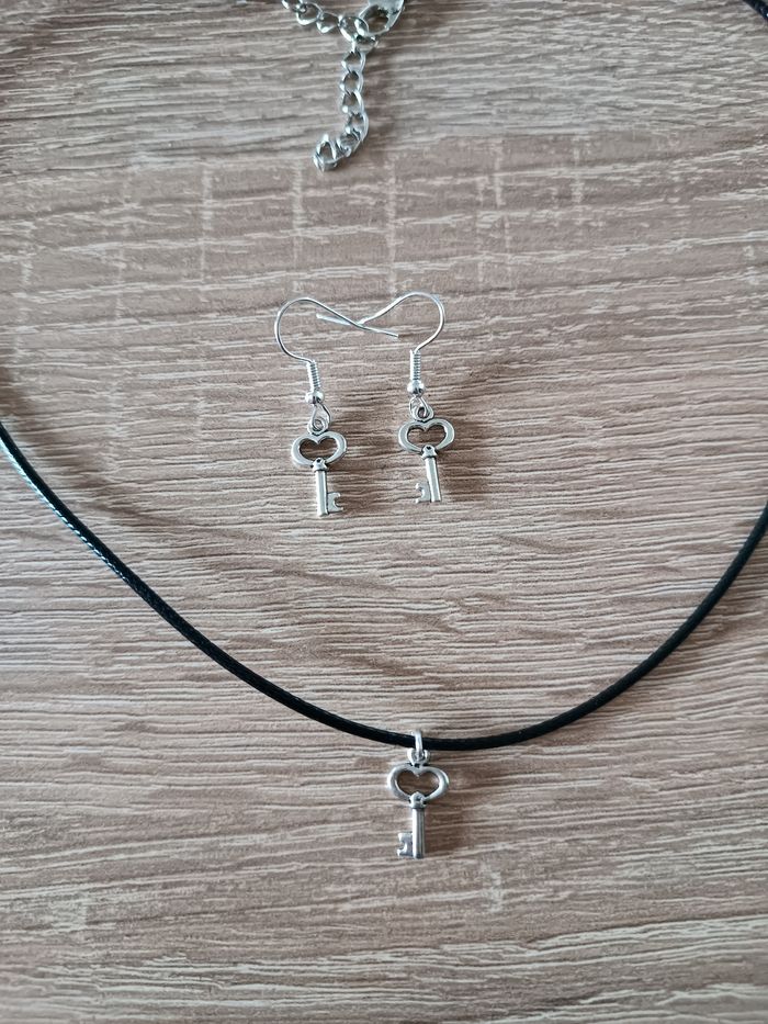 Ensemble parure bijoux collier boucles d'oreille coeur clé - photo numéro 1