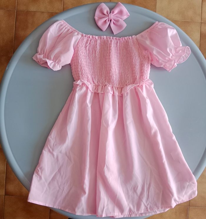 Ensemble robe rose et barrette gros noeud