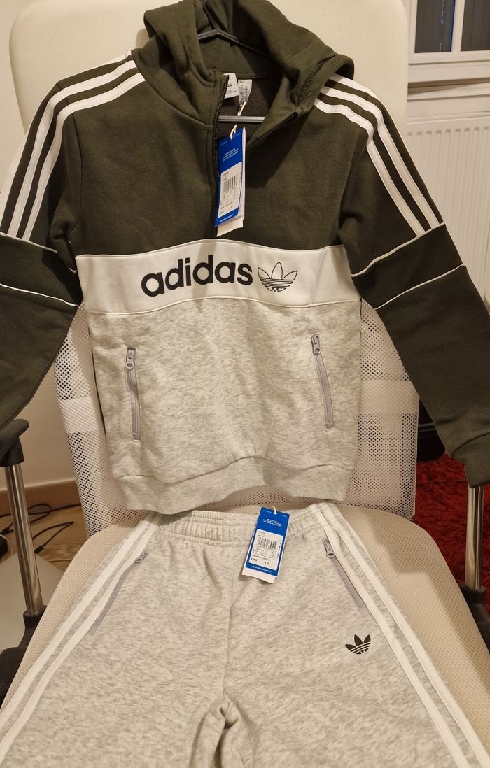 Le style 3 bandes avec cet ensemble au sweat à capuche Itasca Camo 1/2 Zip pour juniors d'adidas Originals. Dans un coloris kaki et blanc, ce sweat à capuche a une tenue confortable. Il est doté d'une capuche avec une fermeture à glissière 1/2 pour une couverture ajustable, de bordures côtelées pour une sensation de sécurité et d'une poche kangourou pour un rangement facile. Fini avec 3 bandes sur les manches et un trèfle sur la poitrine. Lavable en machine. Le pantalon de survêtement présente une taille élastiquée pour une coupe décontractée, des poignets côtelés pour une sensation de sécurité et des poches latérales pour vos essentiels. Fini avec la marque 3 bandes et trèfle sur la jambe. Lavable en machine. (Description boutique prix 120€ voir étiquettes)