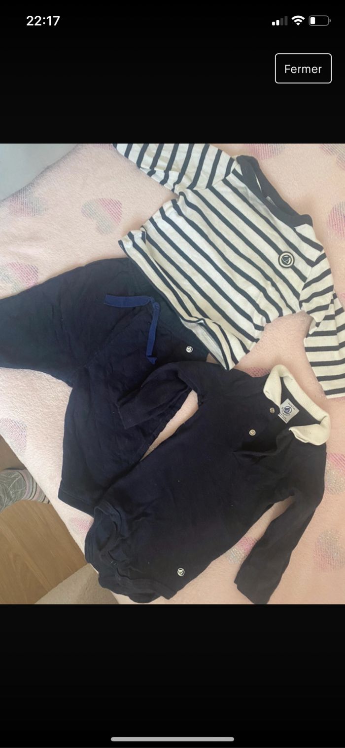 Très bon état Ensemble marin Body pull et pantalon Taille 6 mois Marque petit bateau