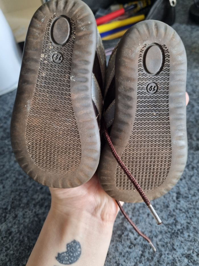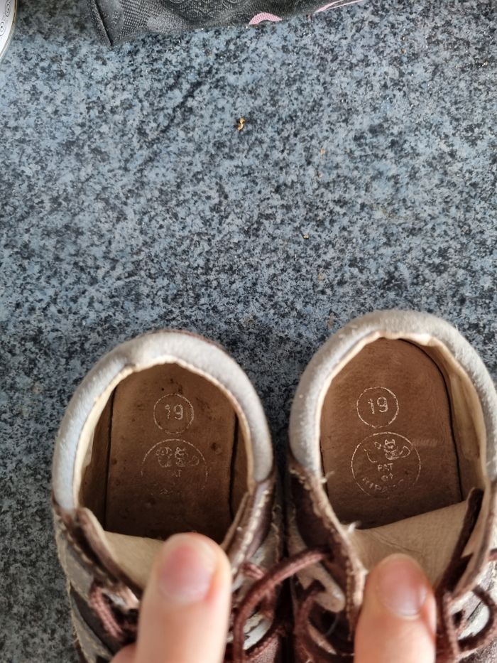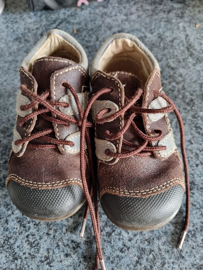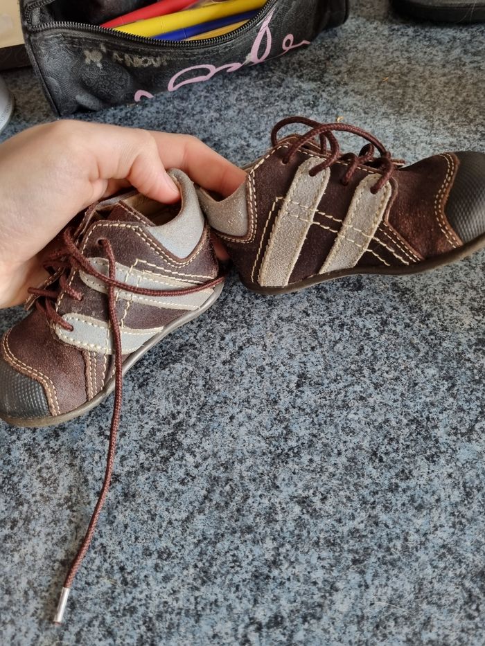 Vends petite chaussure bleu et brun avec renfort sur l'avant