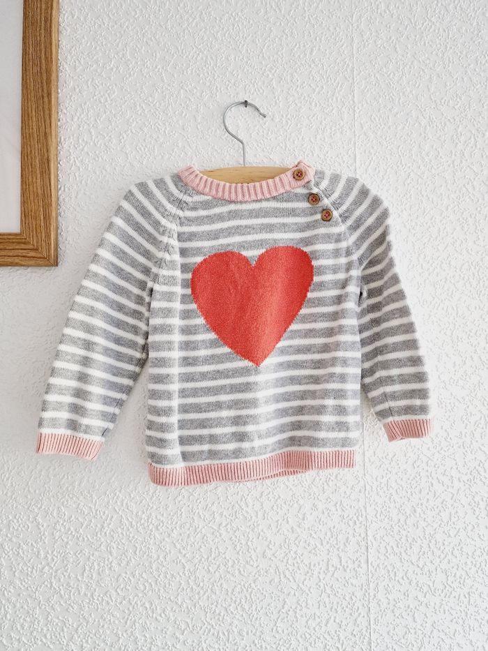 H&M - Pull en maille fine à manches longues, col rond - Cœur (12 mois) - photo numéro 1