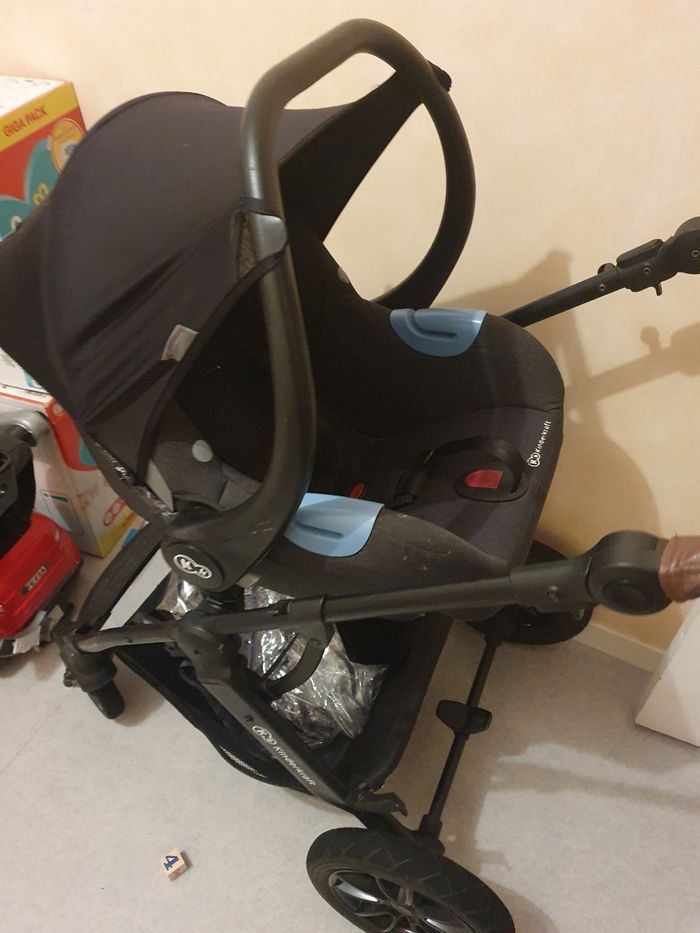 Vends pousette le cosy s'enlève pour mettre la nacelle, vendue avec moustiquaire entourage pluie et le sac qui va avec