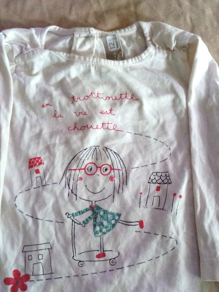 Tee-shirt blanc, fille, 12 mois, dpam - photo numéro 2