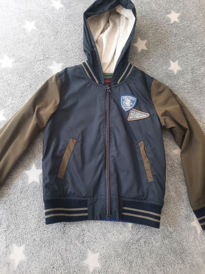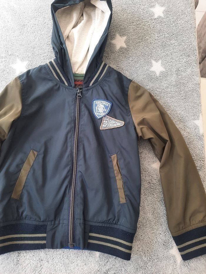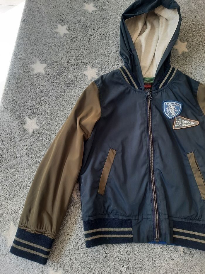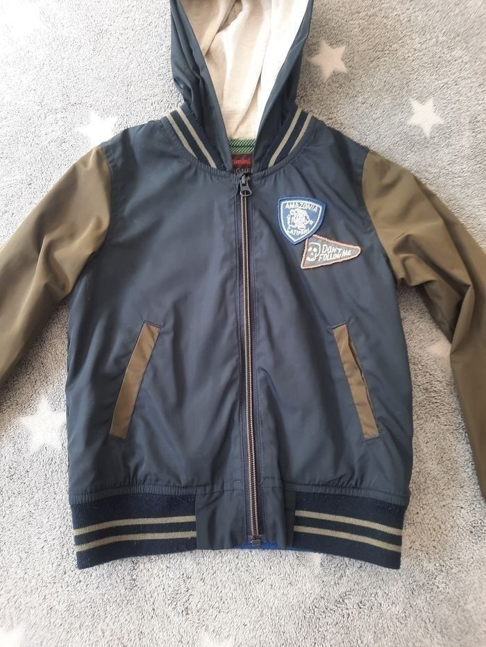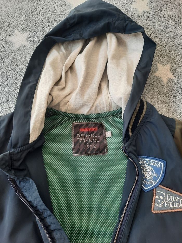Jolie veste coupe-vent de marque catimini. En taille 5 ans 110 cm Couleur kaki et bleu marine