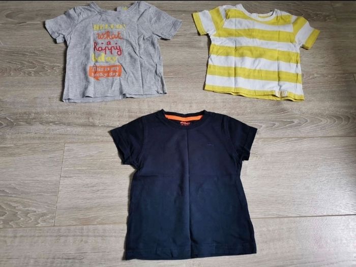 Je vends un lot de 3 t shirts manches courtes en taille 3 ans. Les 2 t shirts en haut se boutonnent à l'arrière. N'hésitez pas à me demander si besoin d'autres infos ou photos. Je vends aussi d'autres vêtements pour garçon, dans mon dressing.
