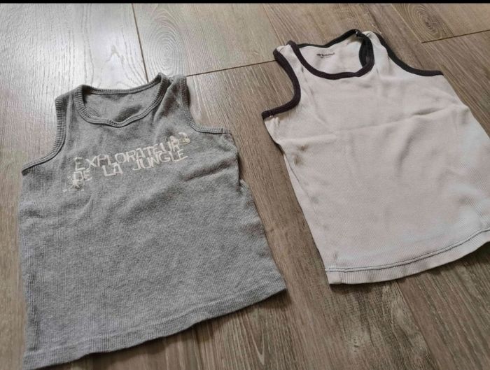 Je vends un lot de 2 débardeurs en taille 3 ans. N'hésitez pas à me demander si besoin d'autres infos ou photos. Je vends aussi d'autres vêtements pour garçon, dans mon dressing.