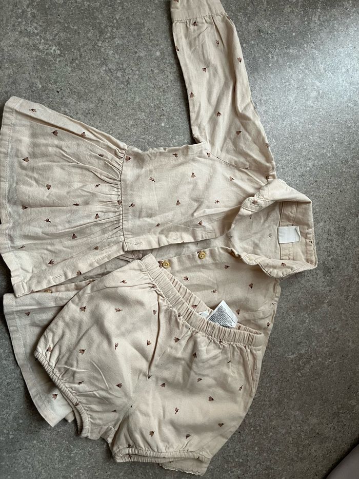 Ensemble robe chemise + short beige H&M de taille 6-9M. Idéal pour le printemps été