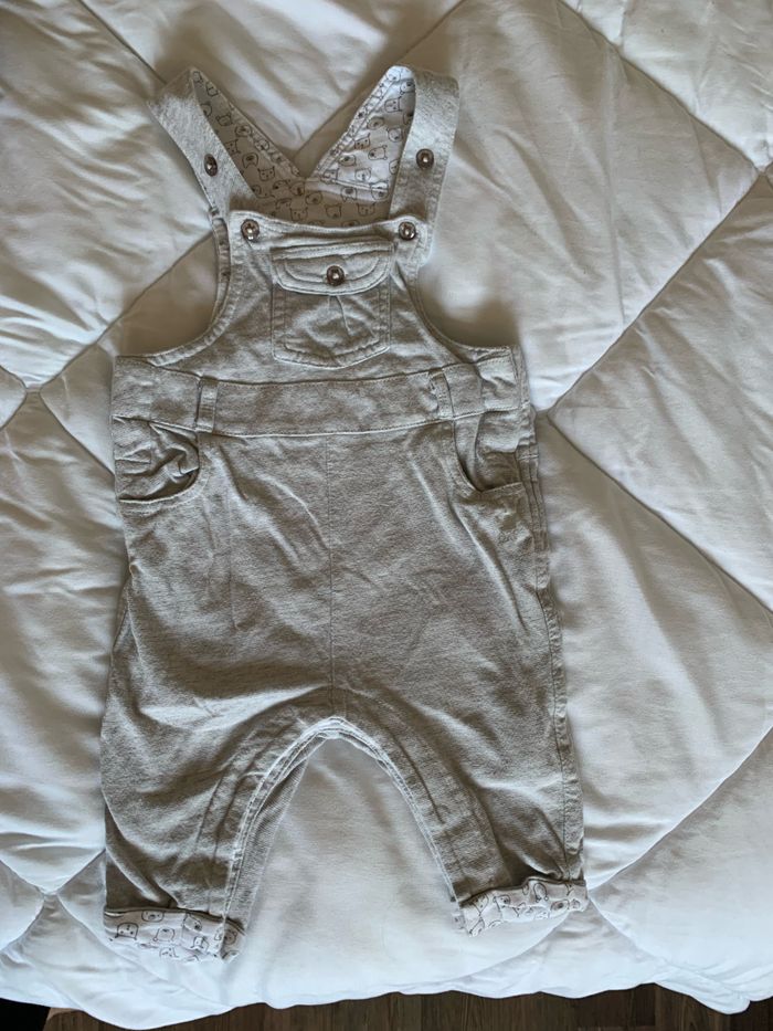 Petite salopette garçon de couleur gris clair.taille 3 mois.très bon état
