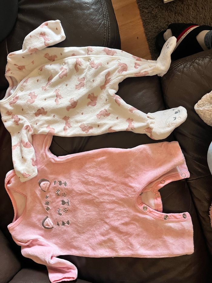 Le pyjamas tout rose a les pieds à l’aire pratique quand il fait trop chaud Pour le blanc et rose marque C&A L’autre je n’est pas la marque