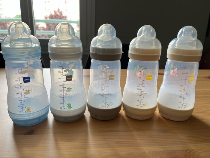 Lot de 5 biberons MAM prévoir de changer les tétines par mesure d’hygiène Très bon état