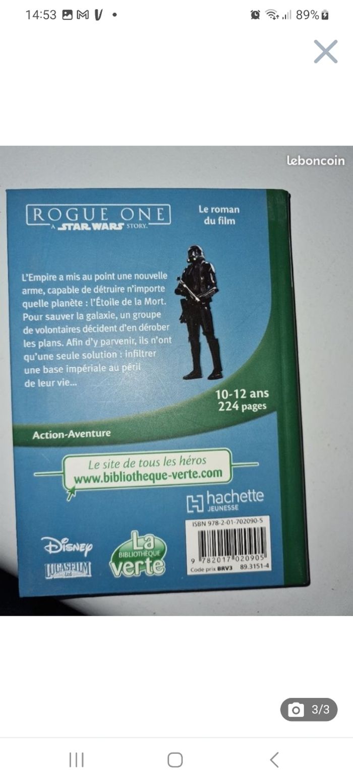 Livre bibliothèque verte rogue one star wars