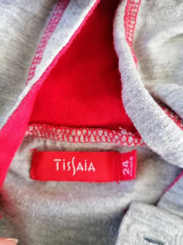 T-shirt manches longues gris avec capuche de marque tissaia 24 mois