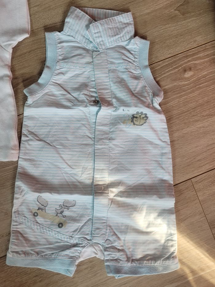 1 sorte de salopette légère à pressions In extenso 2 shorts coton TeX Baby 1 pantacourt Les bébés sont comme ça 1 tee shirt polo lot vete