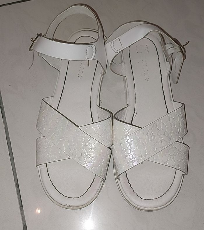 Sandales fille blanche un peu nacrée Usée