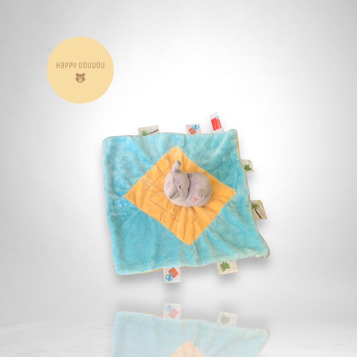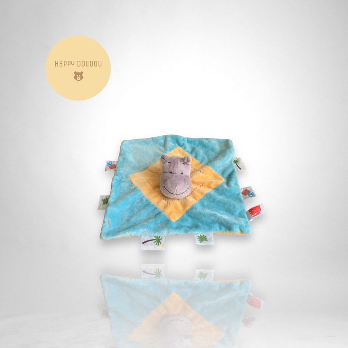 Doudou carré bleu orange hippopotame Influx DP281 - photo numéro 1