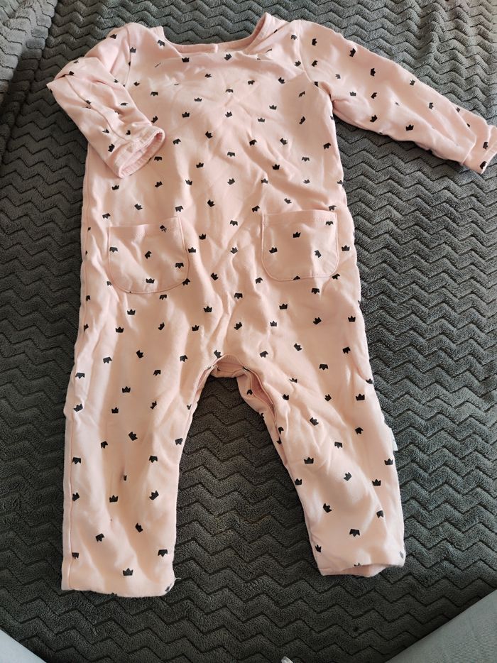 Combinaison 12 mois assez chaude rose couronne noire porté une fois