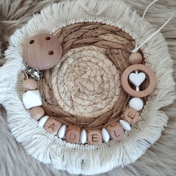 Attache tétine personnalisée Bois naturel et Silicone alimentaire Sans BPA ni autres substances toxique Différents coloris possibles Adaptateur mam 1€