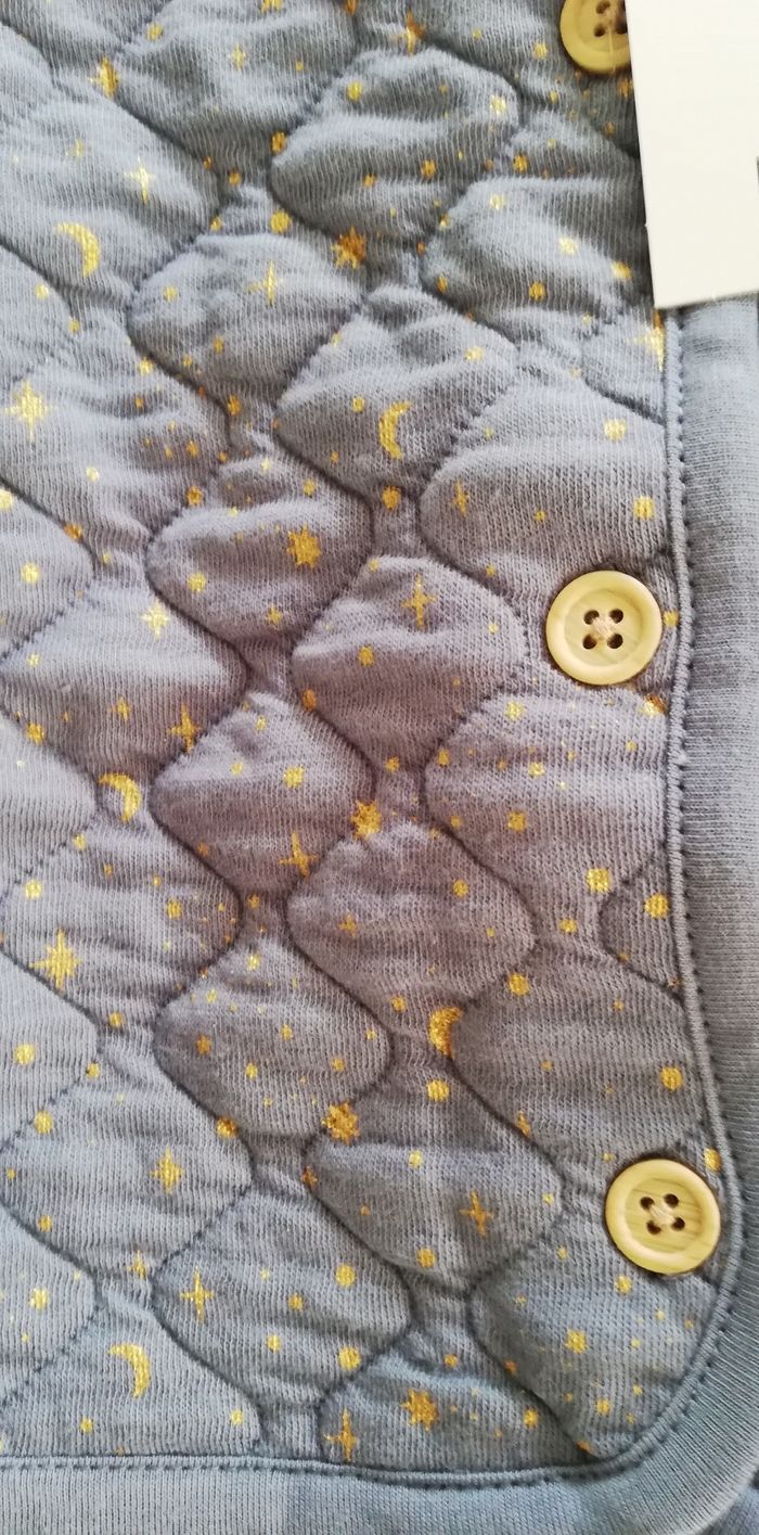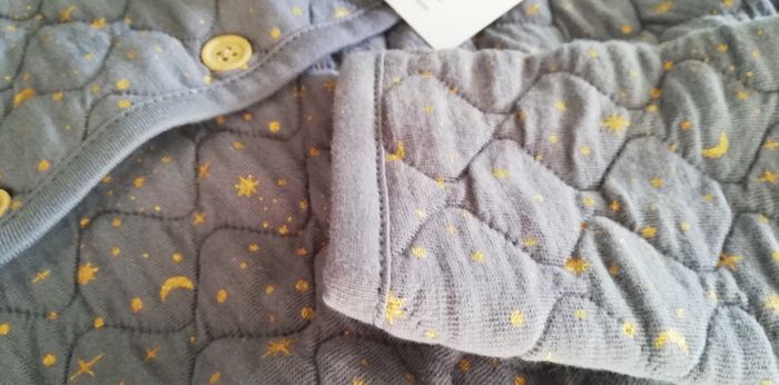Neuf jamais porté Taille 12 mois Imprimé étoilé bleu grisé imprimé Ouverture boutonnée Motifs lunes et étoiles doré Couleur bleu grisé