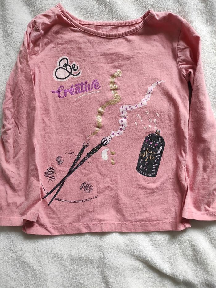 Lot de trois tee shirts manches longues le rose de marque Gémo le blanc de marque Kiabi et le Minnie marque orchestra dessin légèrement usé