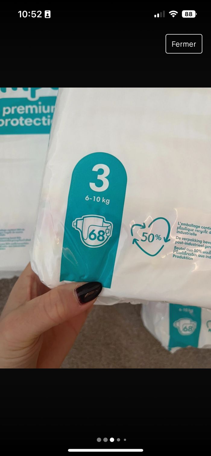 Lot de 3 paquets de couches #pampers Taille 3 Paquets de 68 couches Catégorie : Pampers premium Neuf !! #couches #couchespampers #couchespamperspremiumprotection #pampers #pamperscouches #pamp