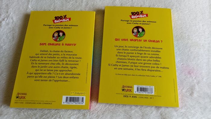 Deux Livres de poche 100%animaux Sept chatons à nourrir Qui veut adopter un chaton. Bon état général.