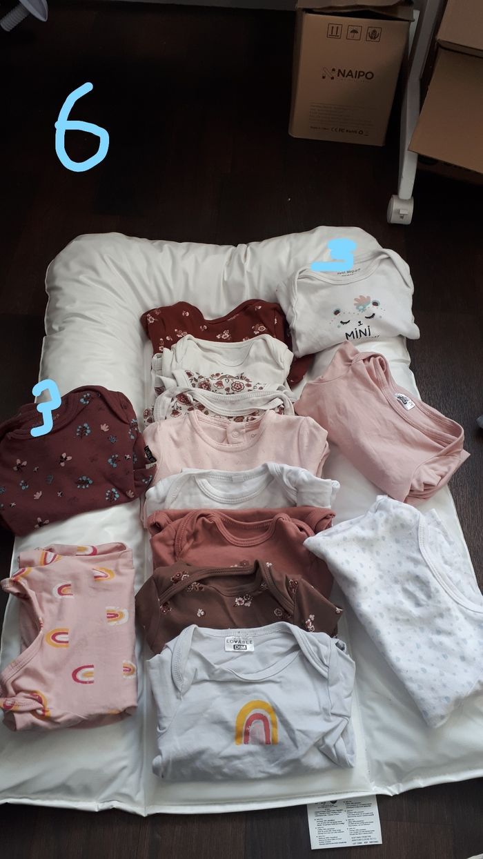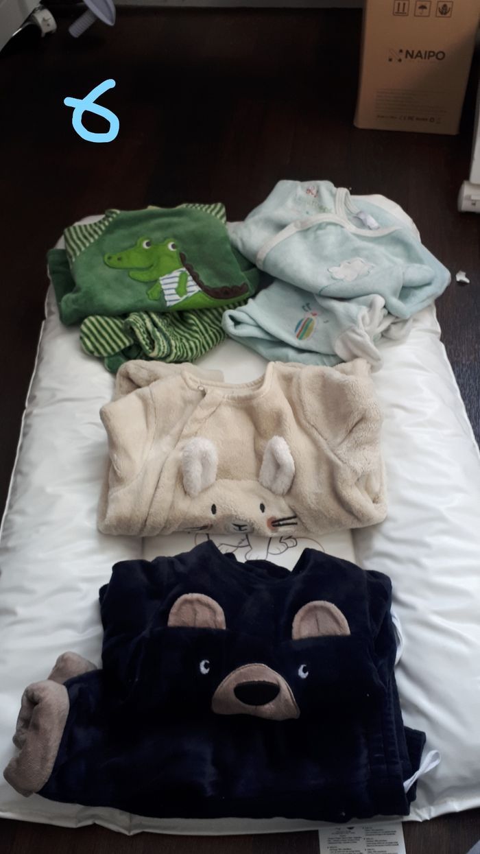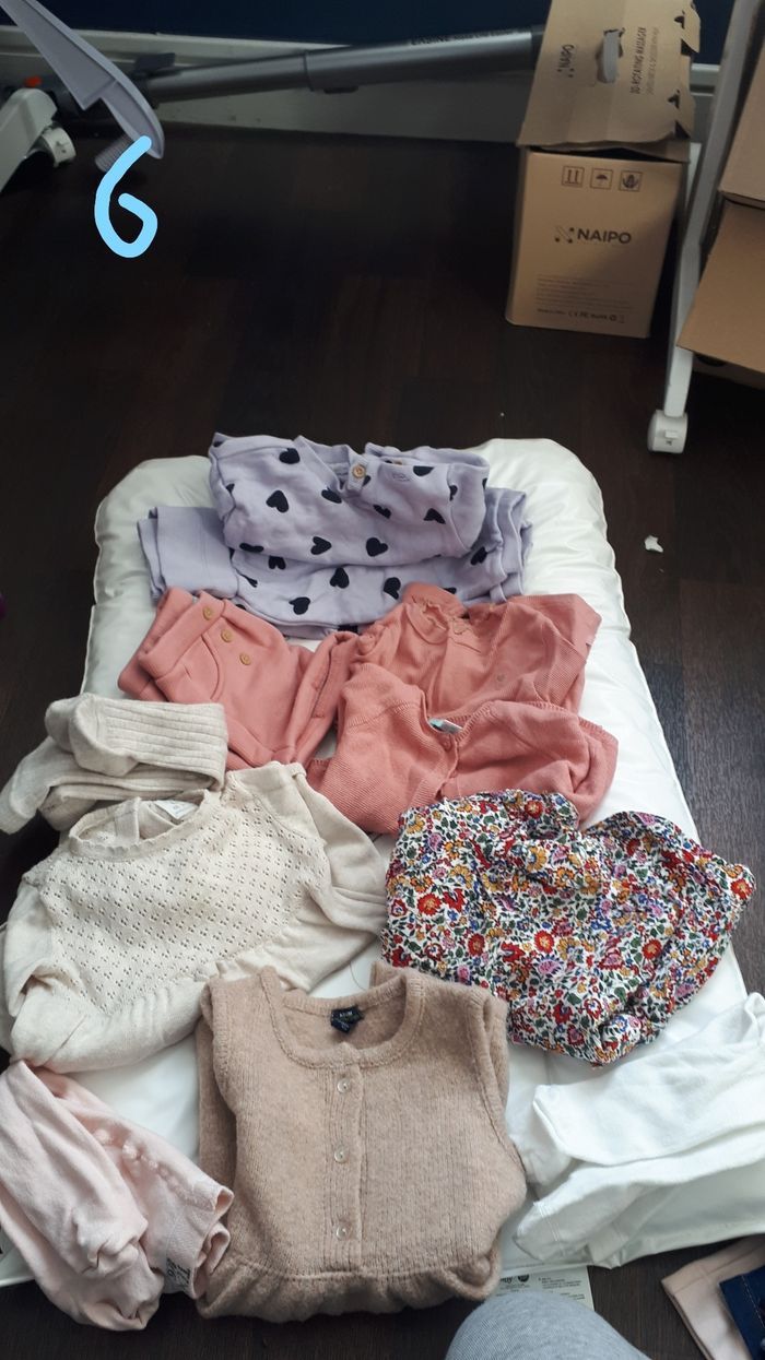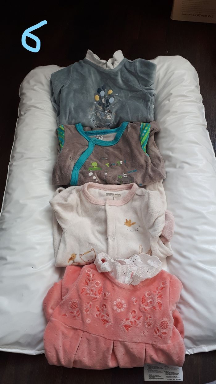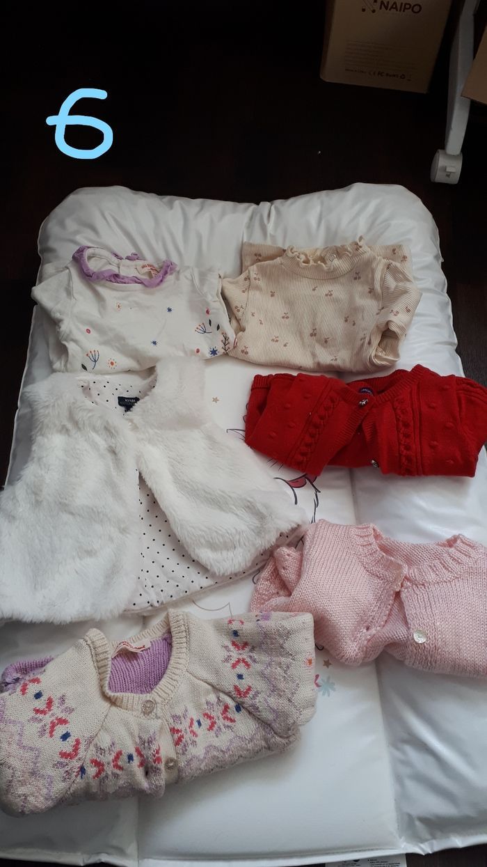 11 bodys manches longues 2 t shirt 4 gilets 5 ensembles 3 ensembles salopettes 3 robes et collants 4 pantalons 3 ensemble pyjamas 1 combi pyjama 3 pyjamas legers 5 pyjamas epais Toutes marques 40 euros